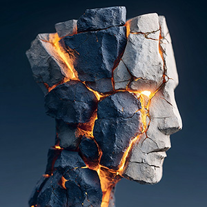 The IKintsugi Skullcap style transforms the subject into a refined ceramic portrait where the head and upper facial planes appear as fractured porcelain or stone.