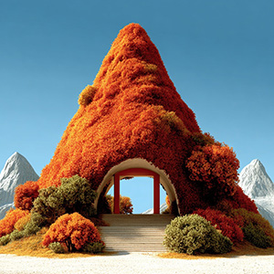 The Memphis Pavilion style transforms the subject into a Memphis pavilion.