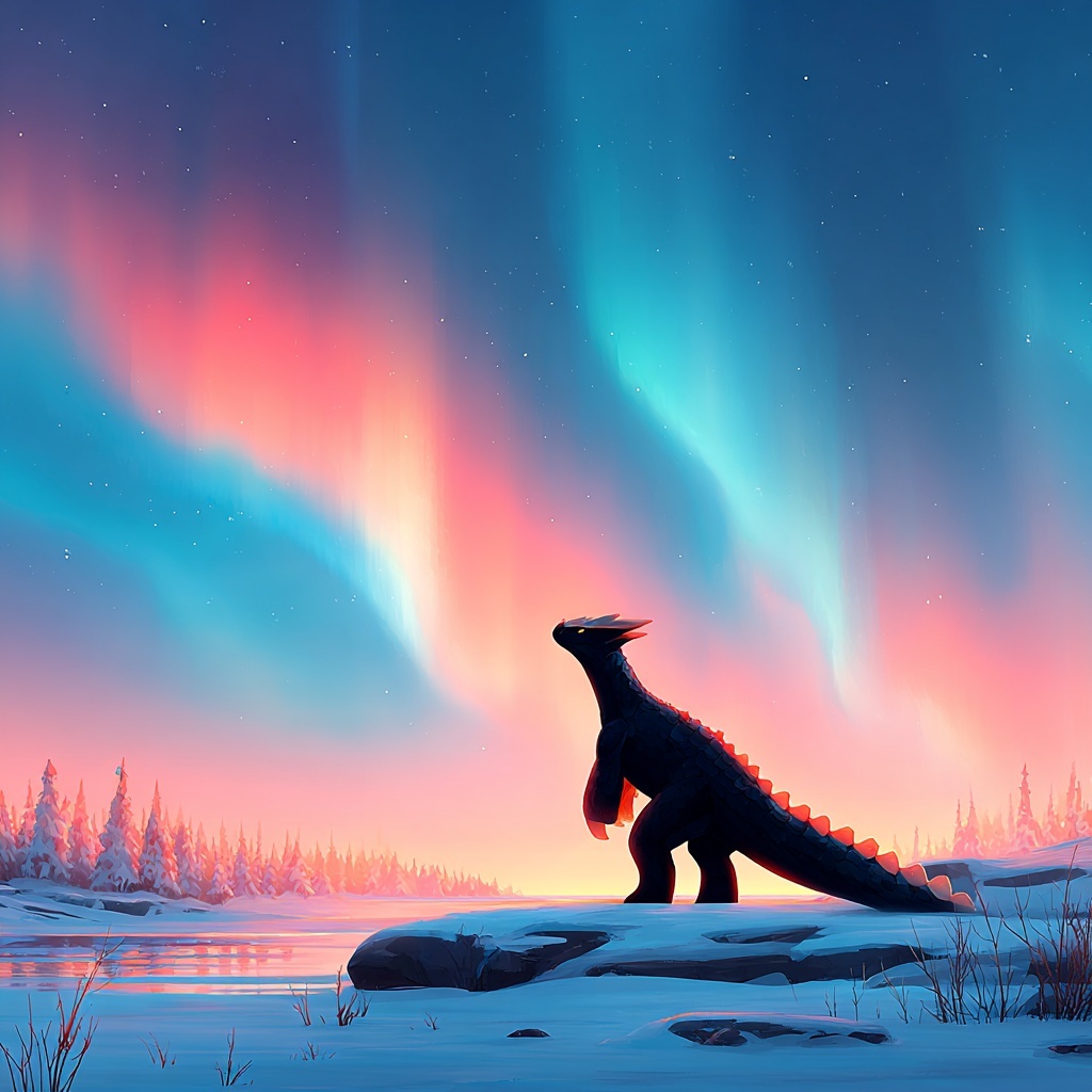 The Aurora Tundra style transforms the subject into a stylized figure illuminated within an aurora tundra.