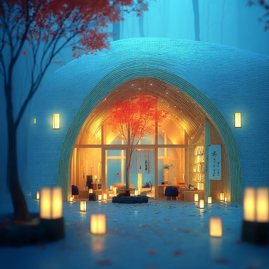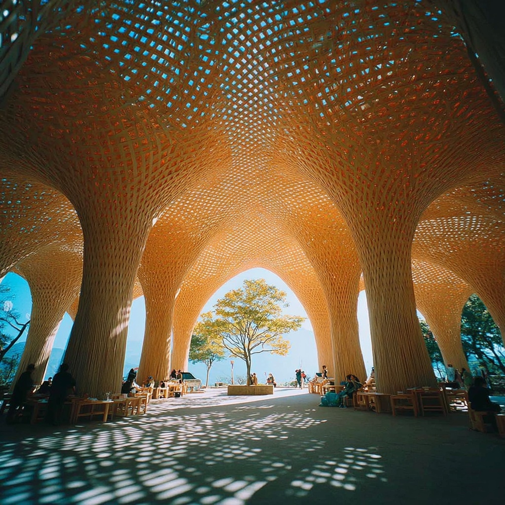 transforms the subject into a parametric bamboo canopy.