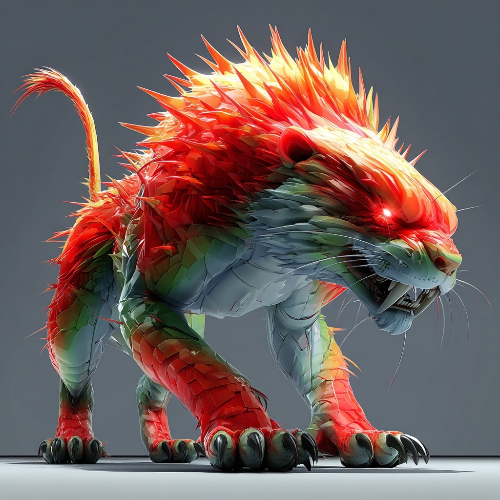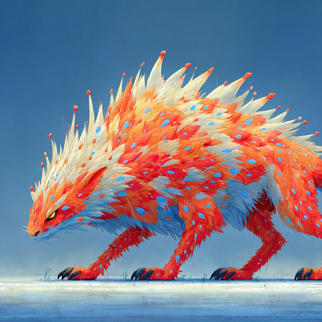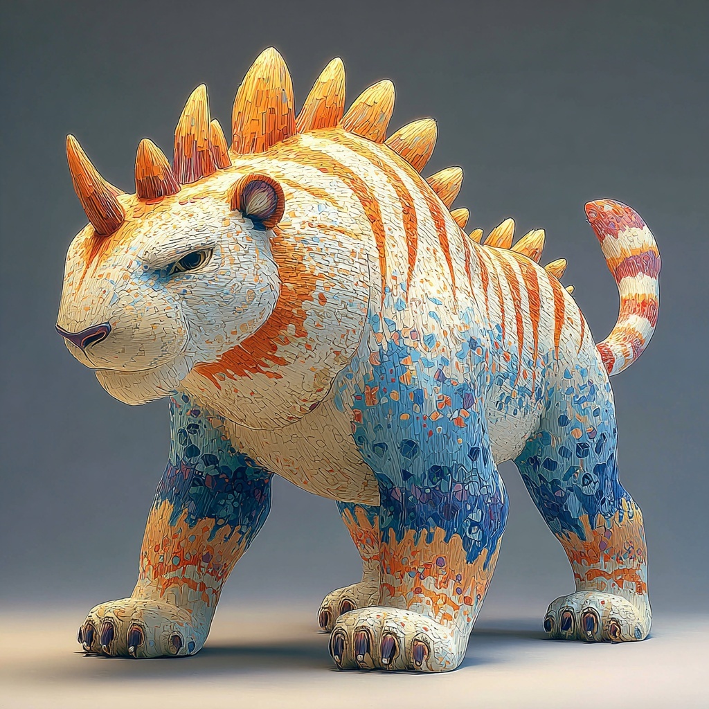 Bo (駮) is a shaggy hunter from the Shan Hai Jing—four watchful eyes, tiger claws, and a spined ridge ready to pounce.