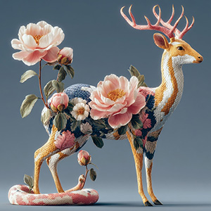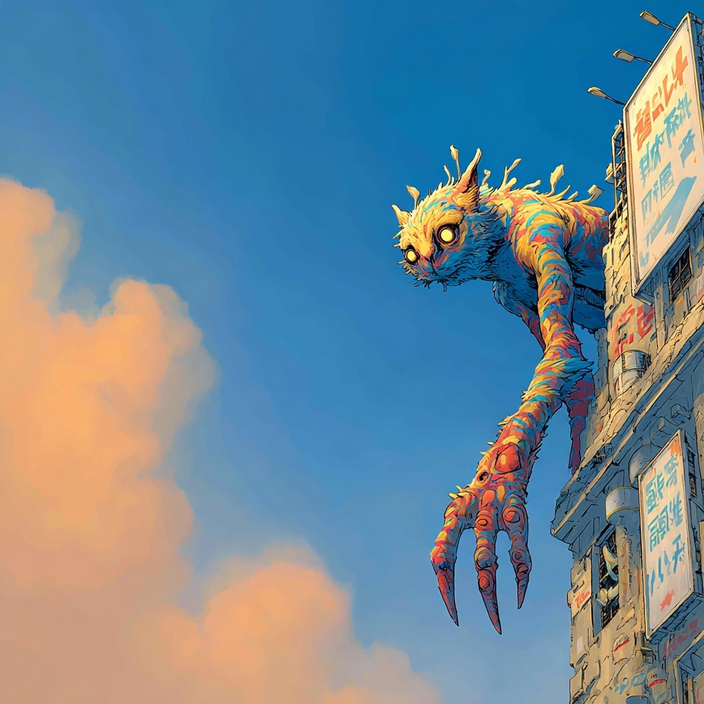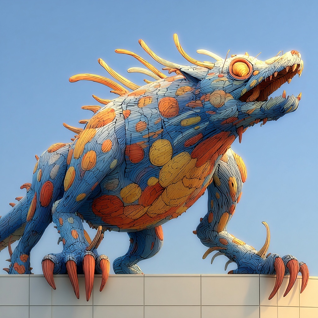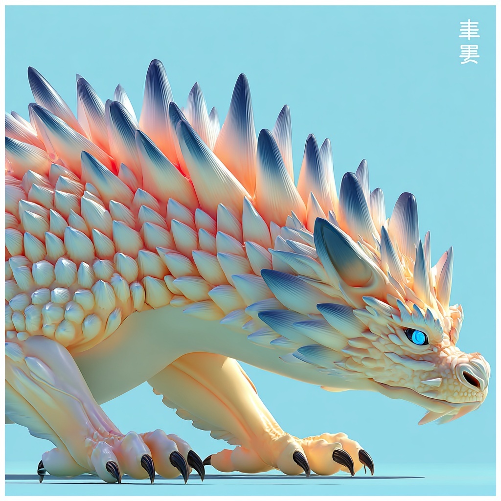 Bo (駮) is a shaggy hunter from the Shan Hai Jing—four watchful eyes, tiger claws, and a spined ridge ready to pounce.