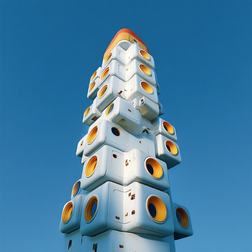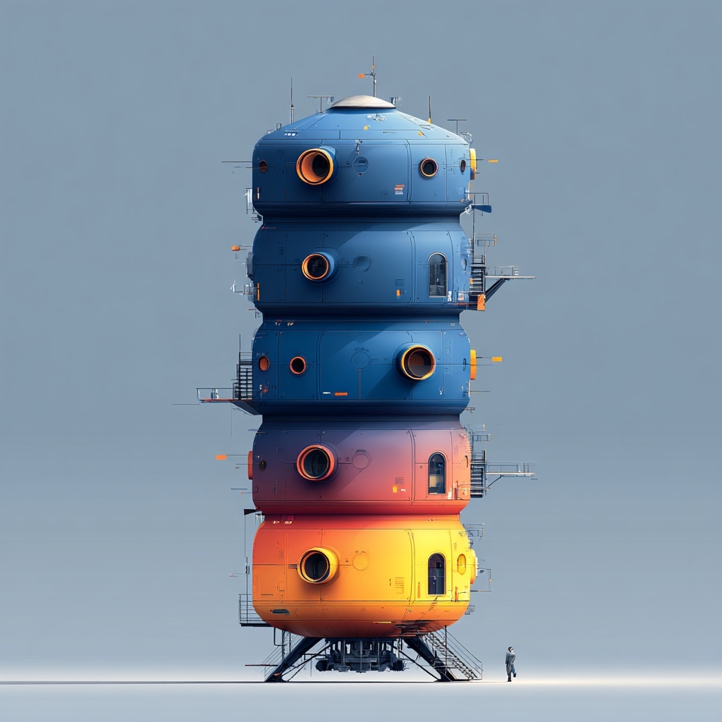The Metabolist Capsules style converts the subject into a Metabolist capsule tower.