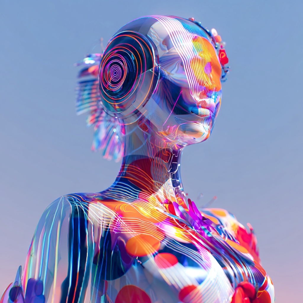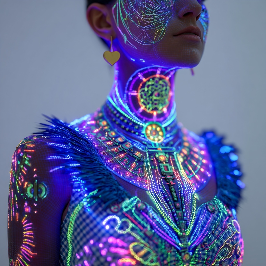 This style fuses mystical symbolism with futuristic circuitry, turning subjects into spiritual-tech hybrids.