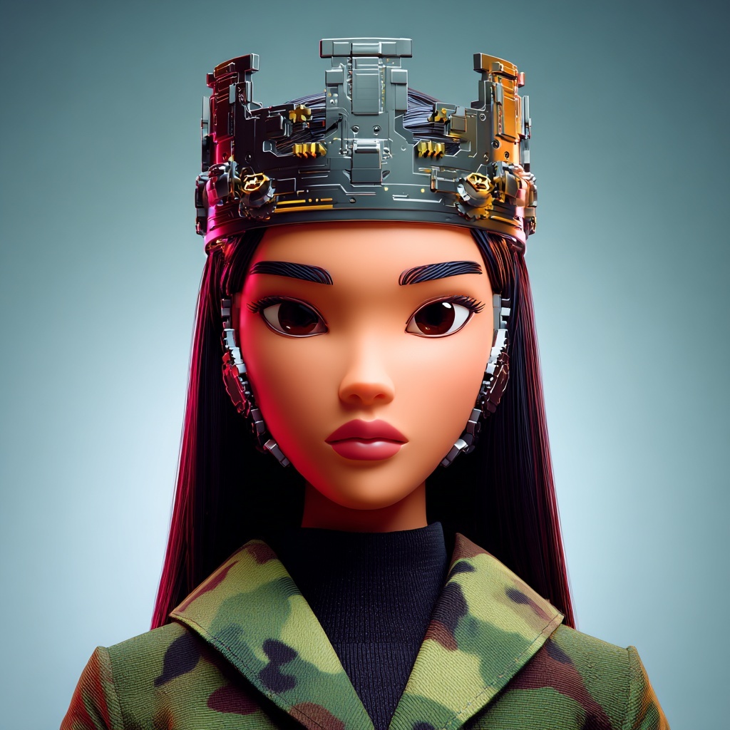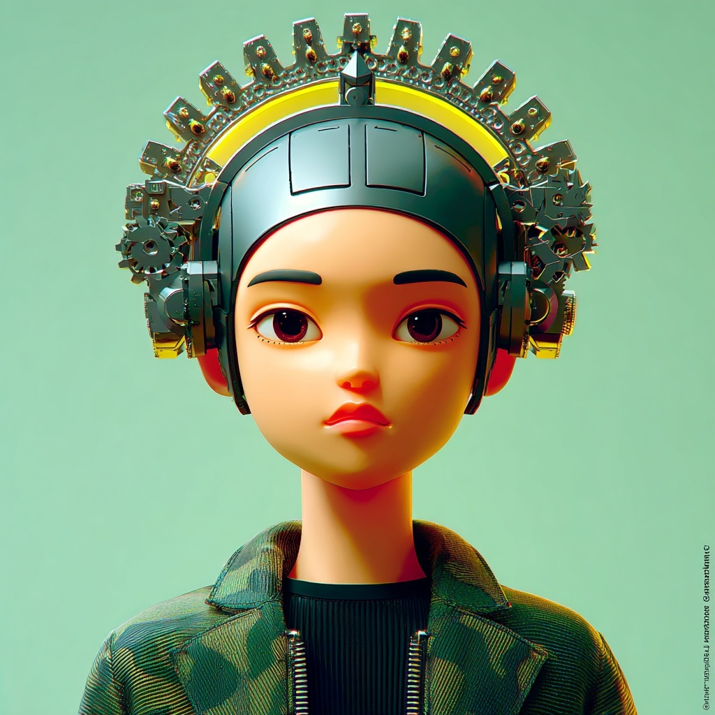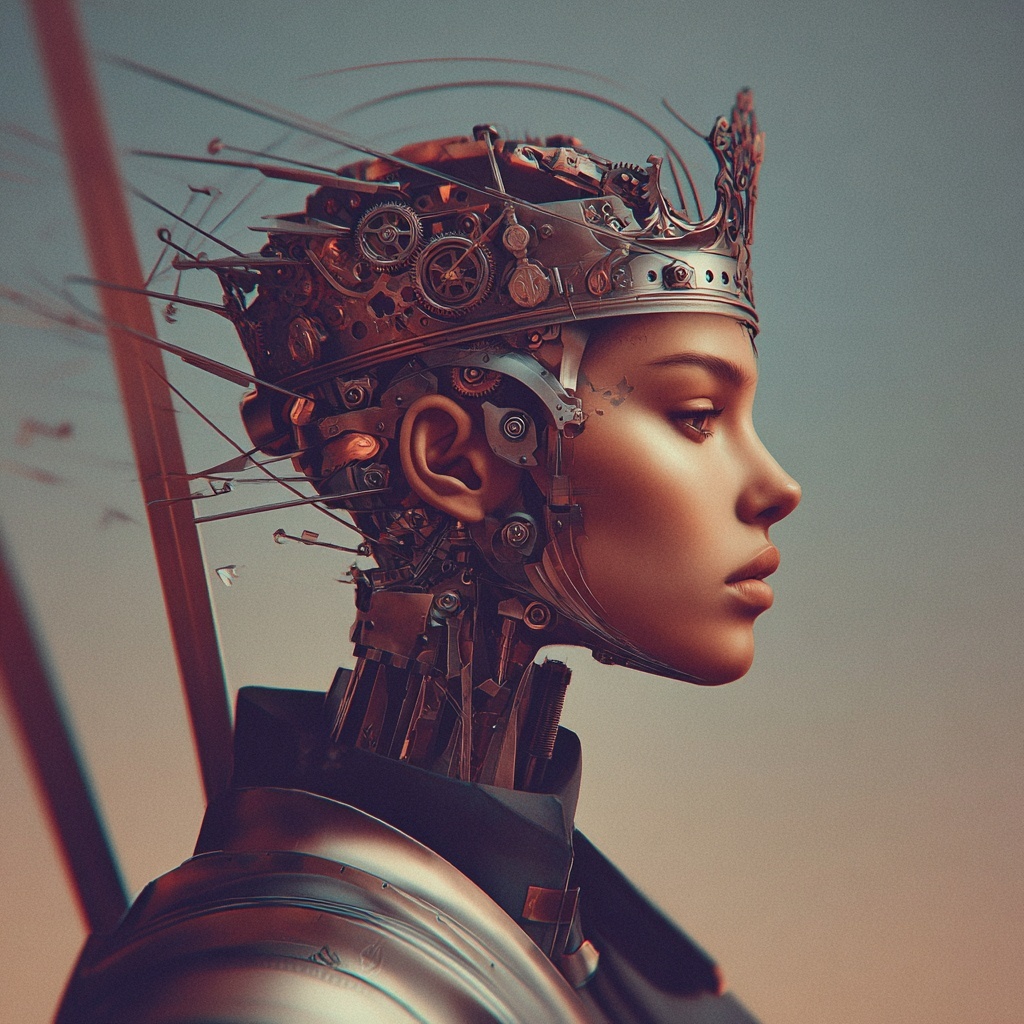 This style crowns subjects with intricate mechanical headpieces made of gears, metal, and futuristic structures.