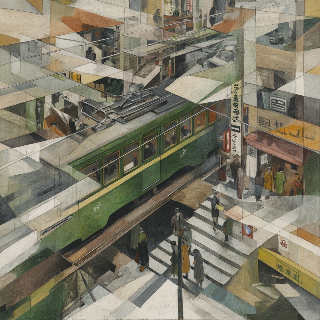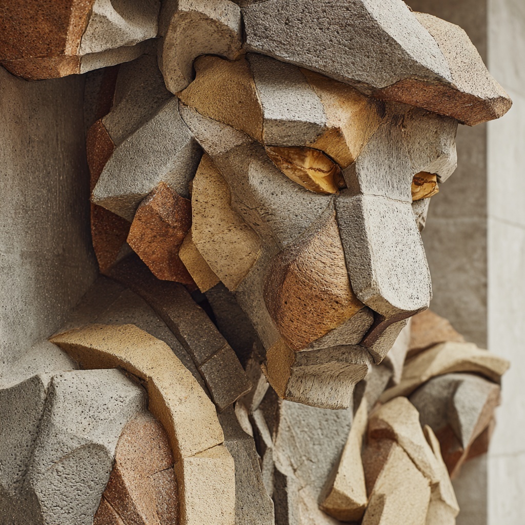 A fractured visual style inspired by cubism, breaking subjects into angular planes, overlapping shapes, and layered perspectives. It highlights abstraction, geometry, and multiple viewpoints within a single image.
