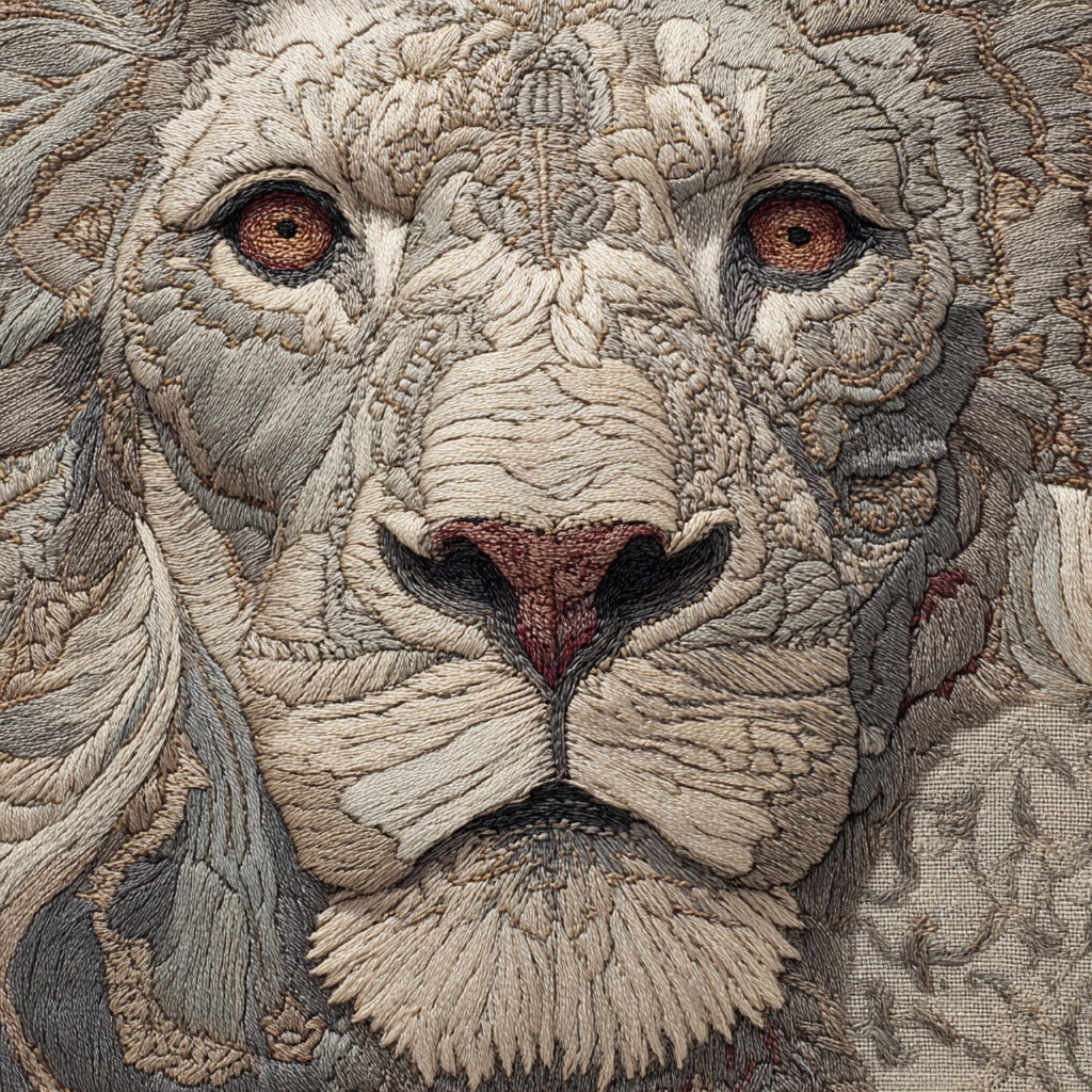 A detailed embroidery artwork style while preserving its overall shape and defining features.