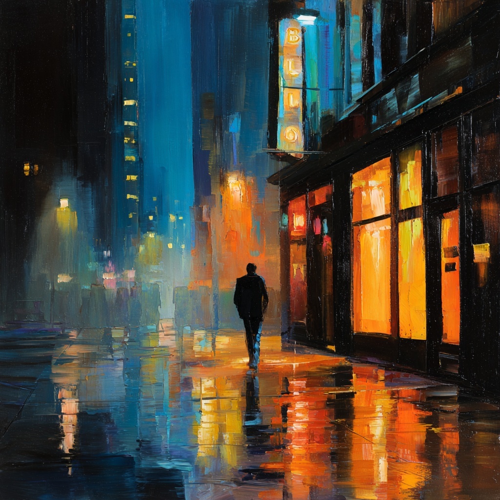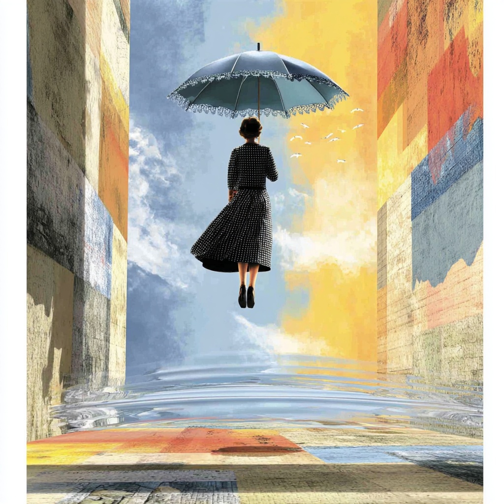 A contemplative style where the subject hovers in a silent void, suspended between falling and floating, evoking tension, stillness, and unresolved thought.