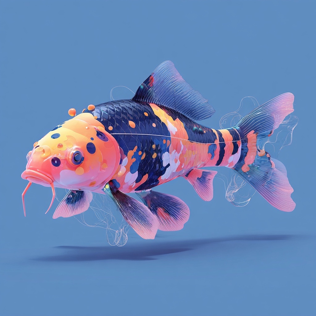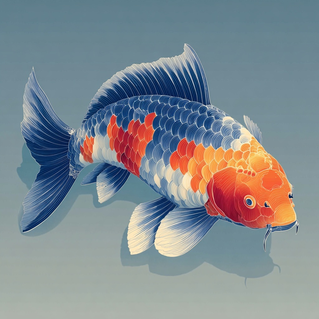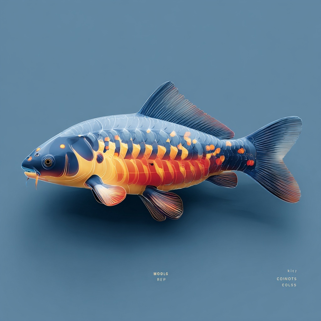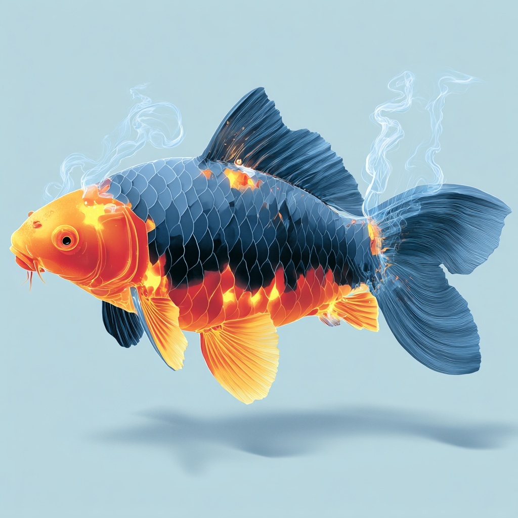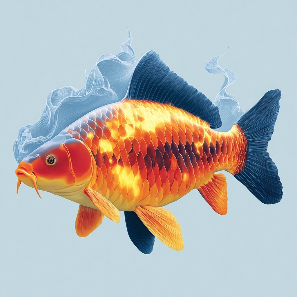 Fire Carp (火鲤) is an ember fish from the Shan Hai Jing—glowing scales and smoky fins trailing sparks.