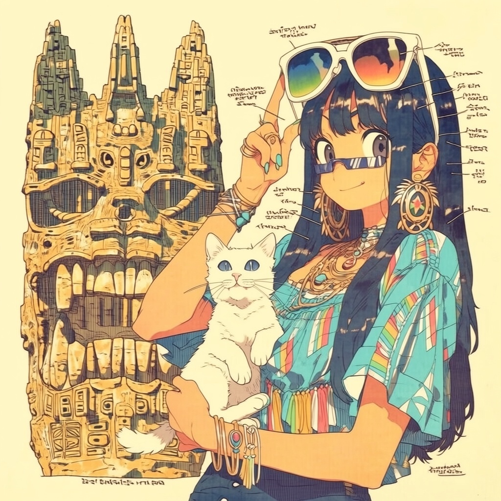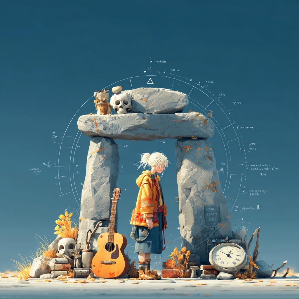 Future Relic Blueprint styles transform the subject into a primitive‑futurist relic rendered like an archaeological blueprint.