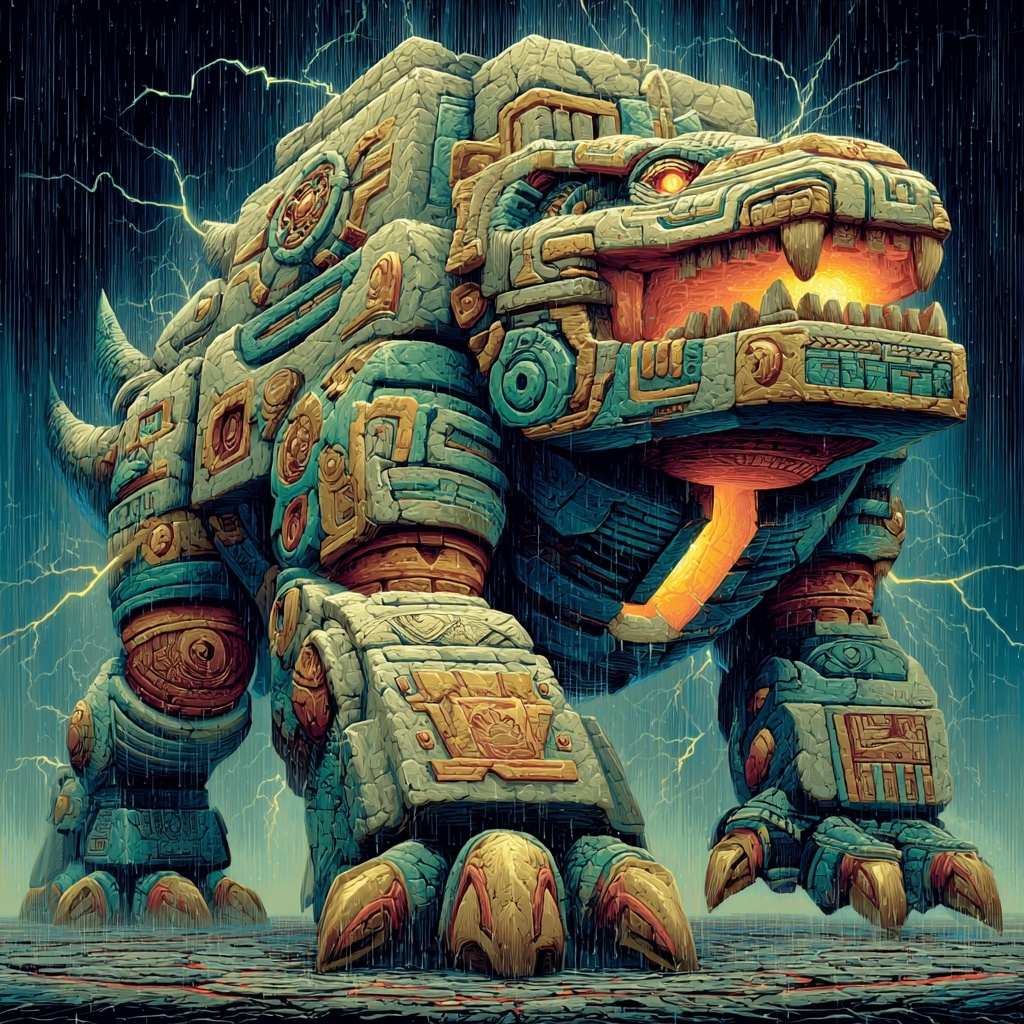 Kui (夔) is a thunder beast from the Shan Hai Jing—one powerful leg, drum-skin hide, and lightning-lit seams.