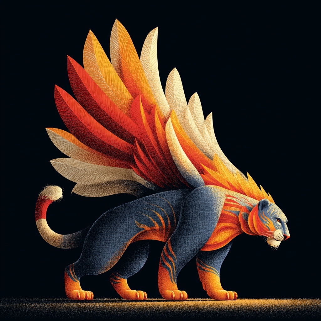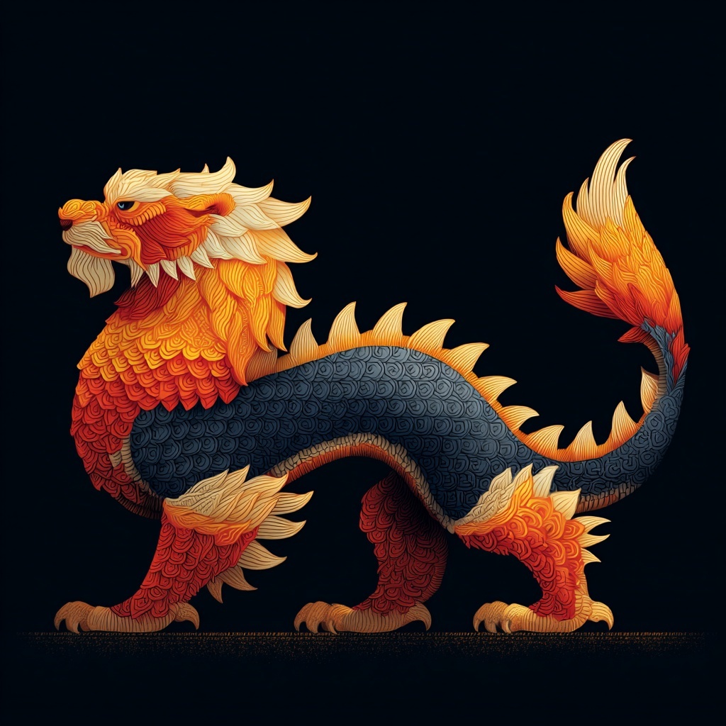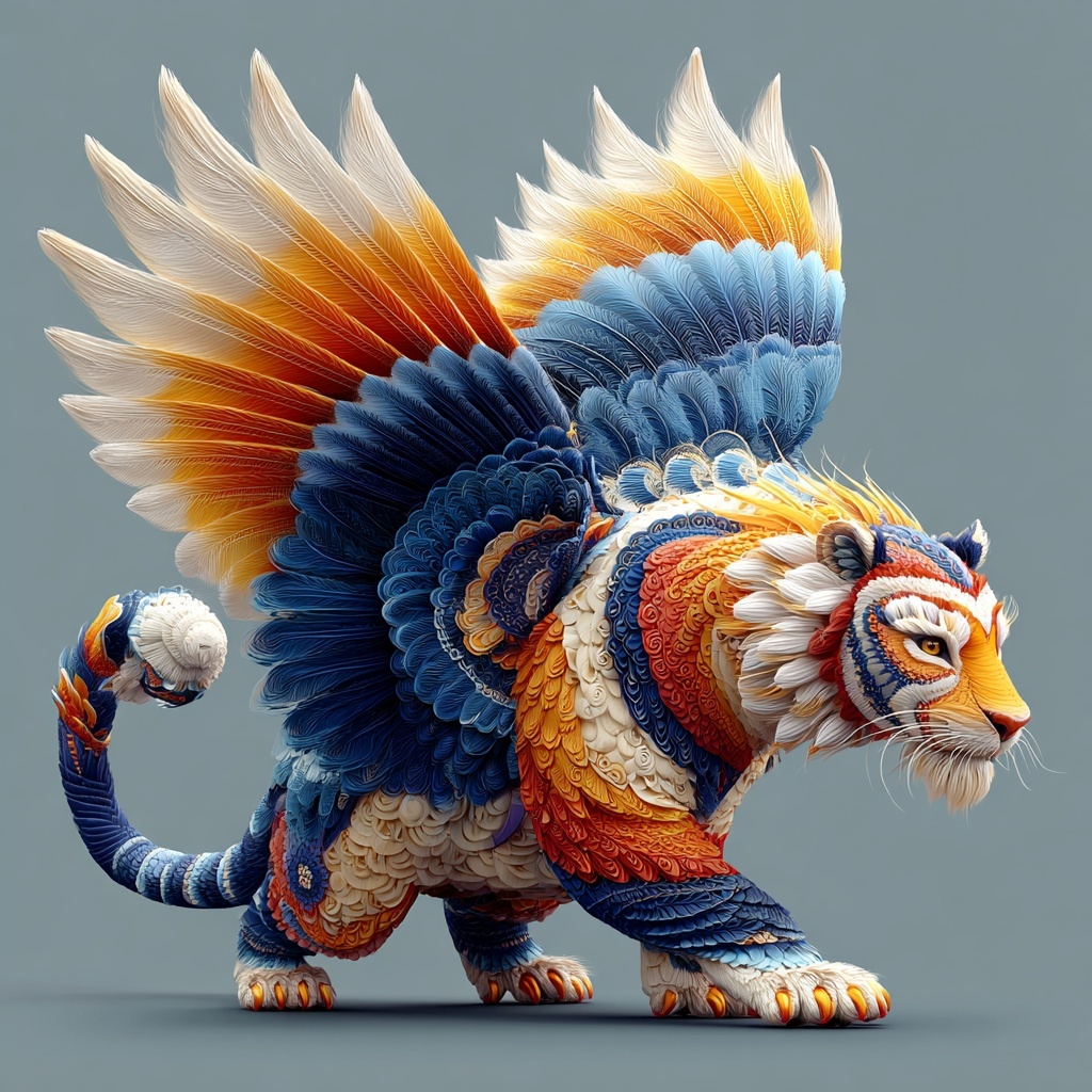 Lu Wu (禺疆) is a Kunlun guardian from the Shan Hai Jing—tiger body, humanlike face, nine tails, and winged shoulders.