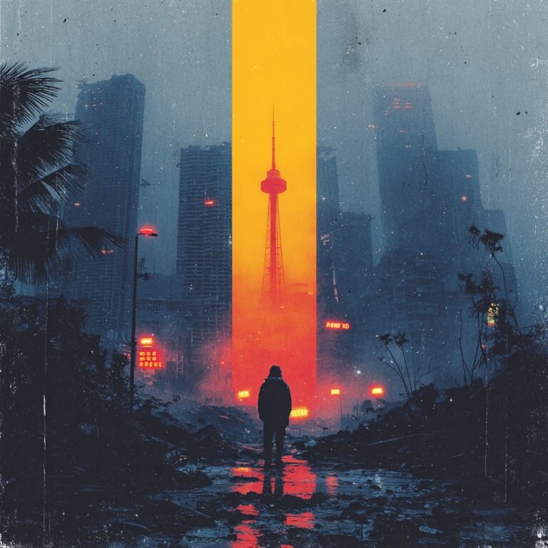 The Flood Aerial View style transforms the subject into a surreal, water-submerged landscape seen from above. Buildings, streets, and objects appear partially drowned, with glowing lights and reflections creating a haunting, dreamlike atmosphere of quiet catastrophe.