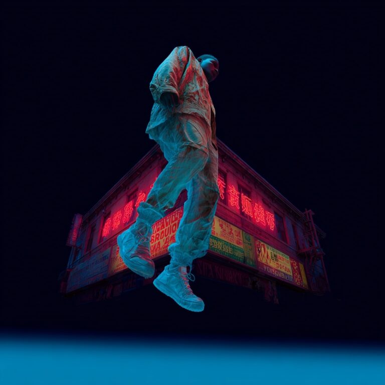 A contemplative style where the subject hovers in a silent void, suspended between falling and floating, evoking tension, stillness, and unresolved thought.