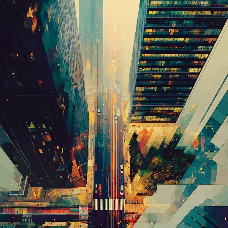 A fractured visual style inspired by cubism, breaking subjects into angular planes, overlapping shapes, and layered perspectives. It highlights abstraction, geometry, and multiple viewpoints within a single image.
