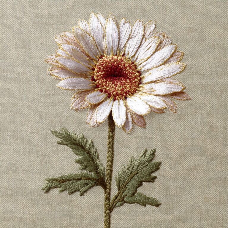 A detailed embroidery artwork style while preserving its overall shape and defining features.