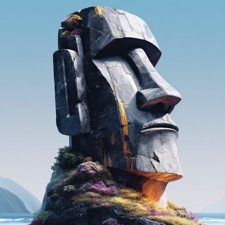 This style is inspired by the monumental stone statues of Easter Island, with faces carved from weathered volcanic rock. Figures are massive, stoic, and timeless, standing as guardians of memory and mystery.