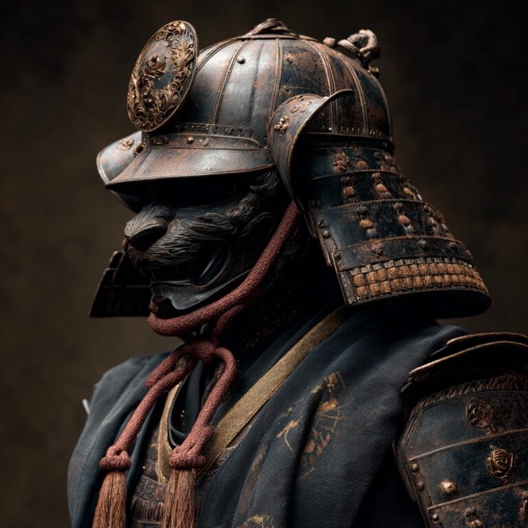 A style rooted in the honor and discipline of feudal Japan, featuring figures clad in intricate samurai armor, layered with lacquered plates, helmets, and flowing cords.