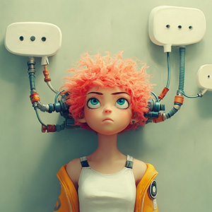 Use a civic-media metaphor bank: podium forms, public-address funnels, and relay channels reshape the subject’s voice before it reaches listeners.