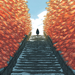 Echoed Face Shrine Style transforms the subject into a shrine built from many partial faces and masks.