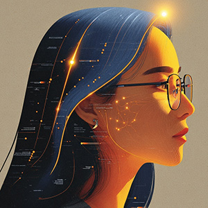 This style overlays subjects with glowing circuit-like patterns, radiant nodes, and flowing energy lines. It generates portraits that fuse humanity with digital networks.