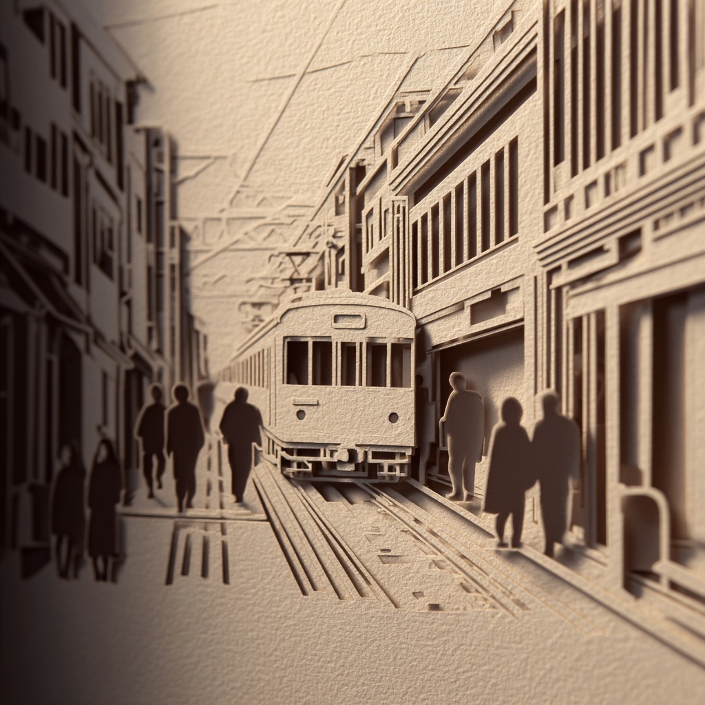 A layered cut-paper aesthetic where subjects are crafted from stacked sheets, creating depth with sharp edges, shadows, and tactile handmade textures.