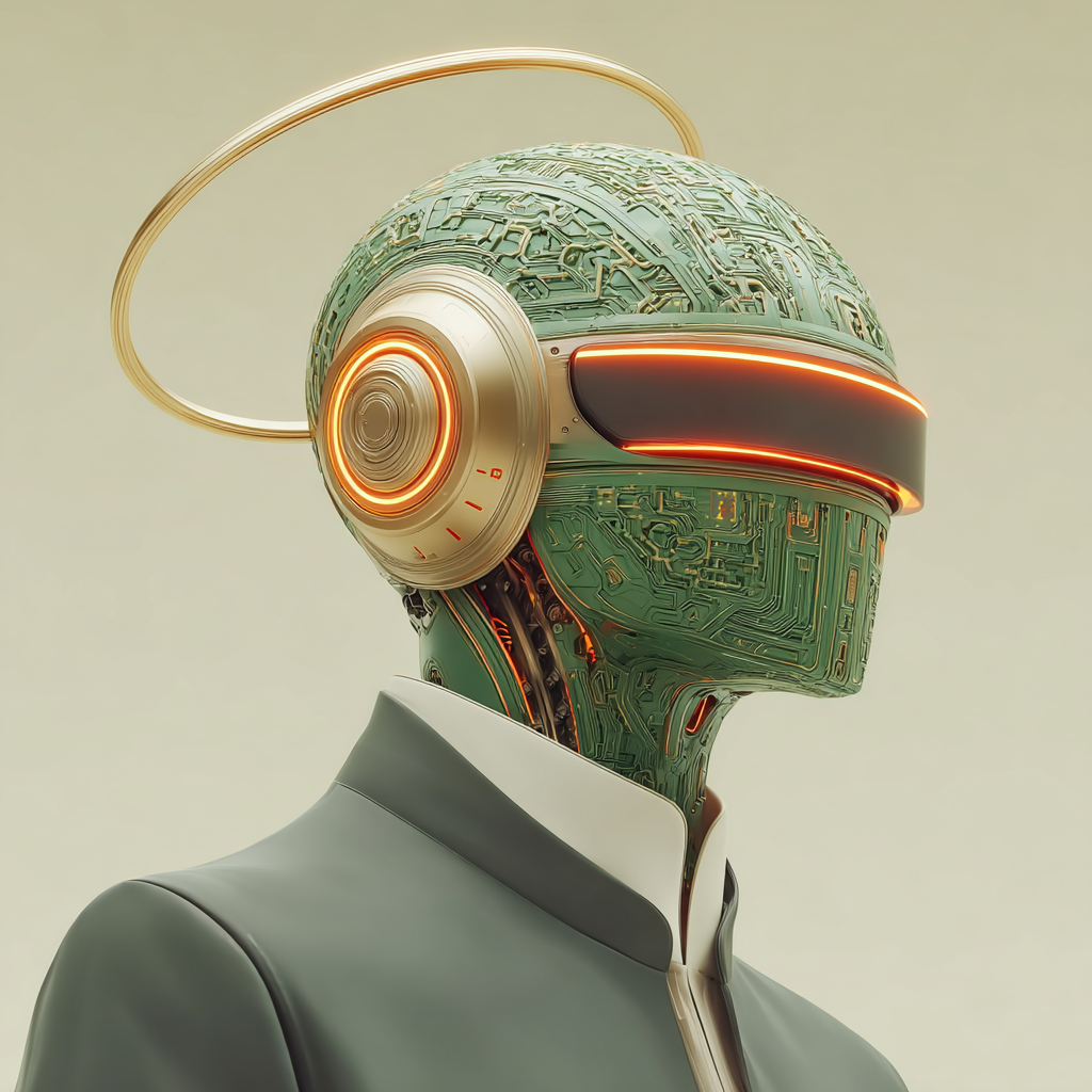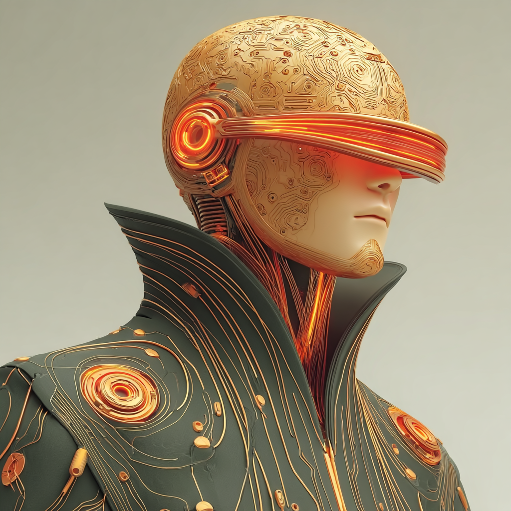 This style envisions subjects as futuristic guardians clad in sleek visors, glowing circuitry, and armor-like designs.