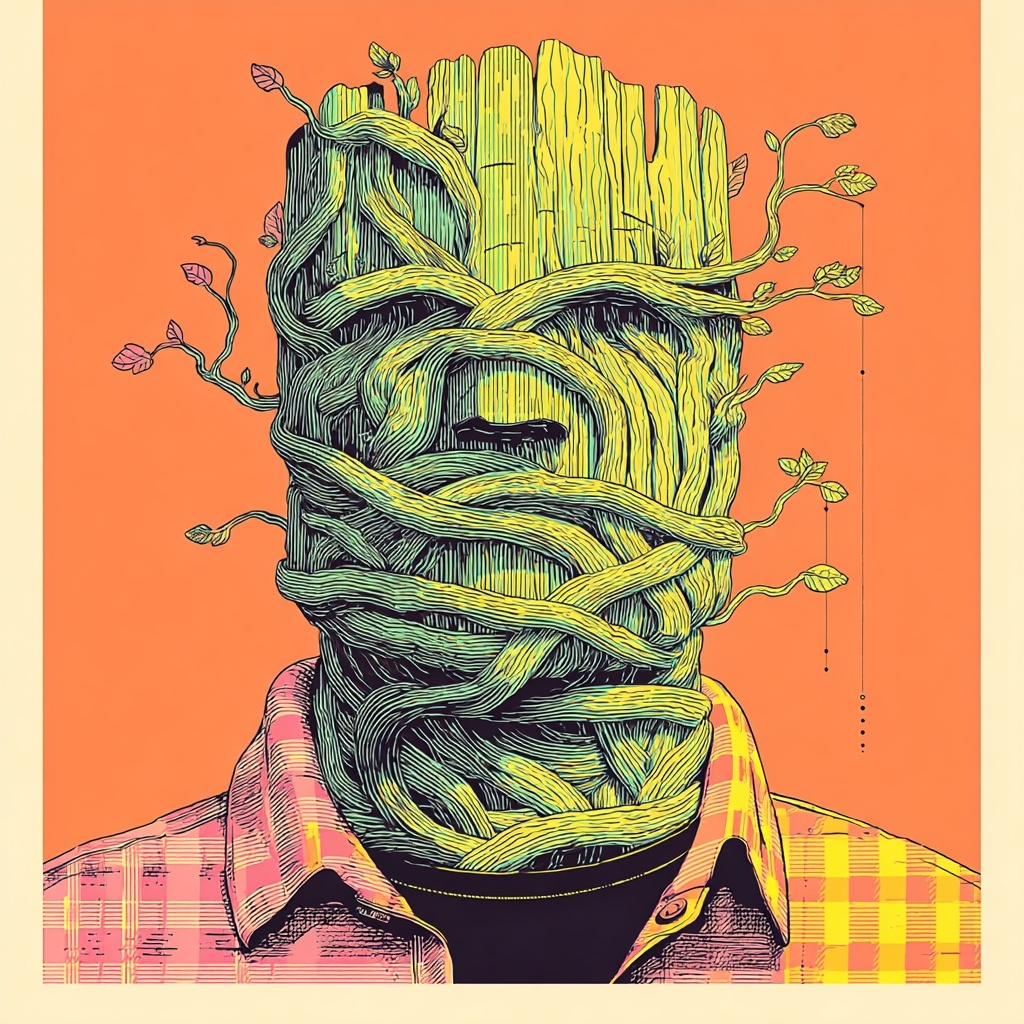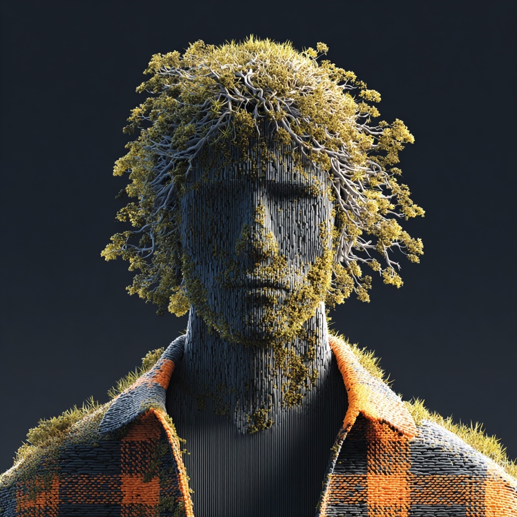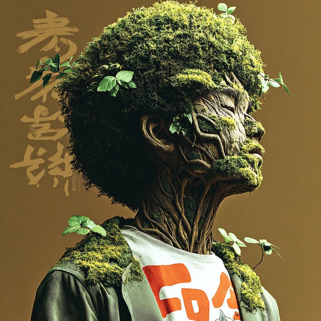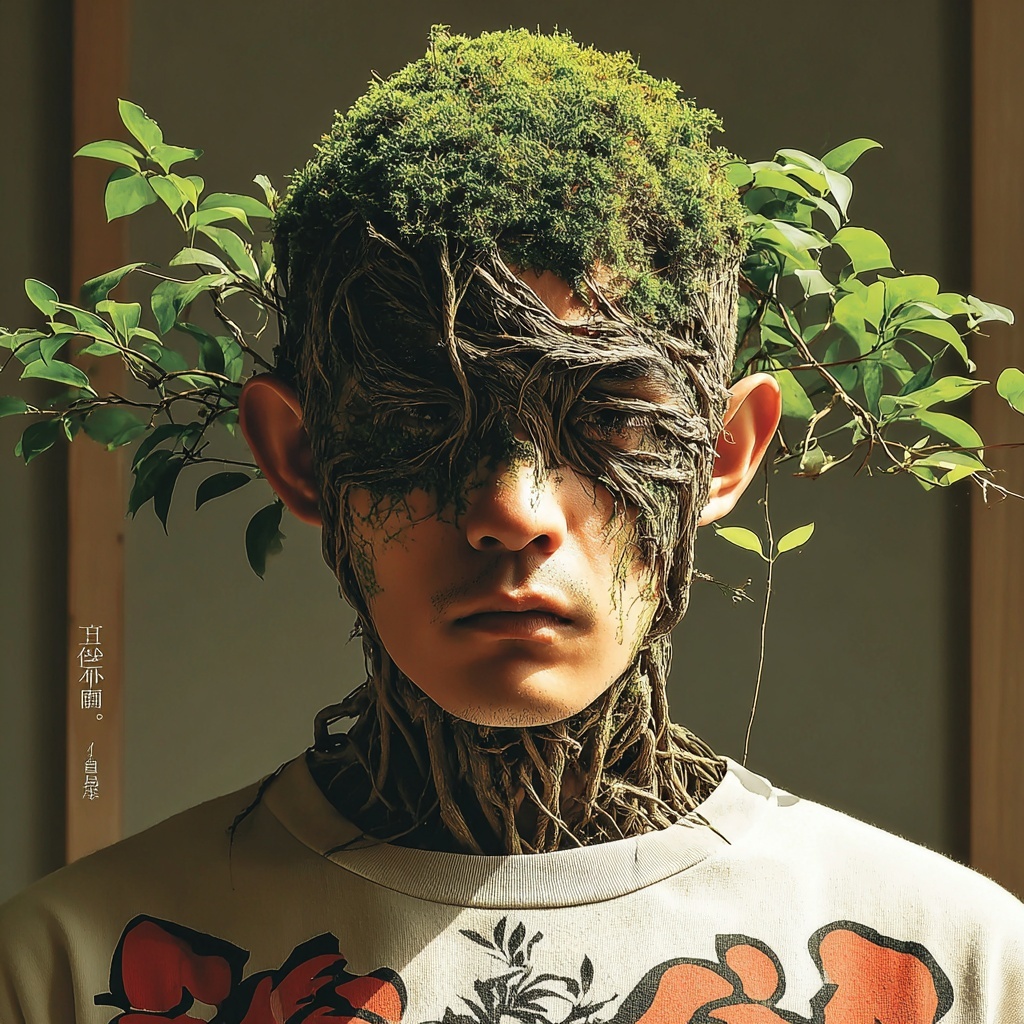 This style entwines subjects with roots, bark, and living greenery, transforming faces into masks of wood and moss.
