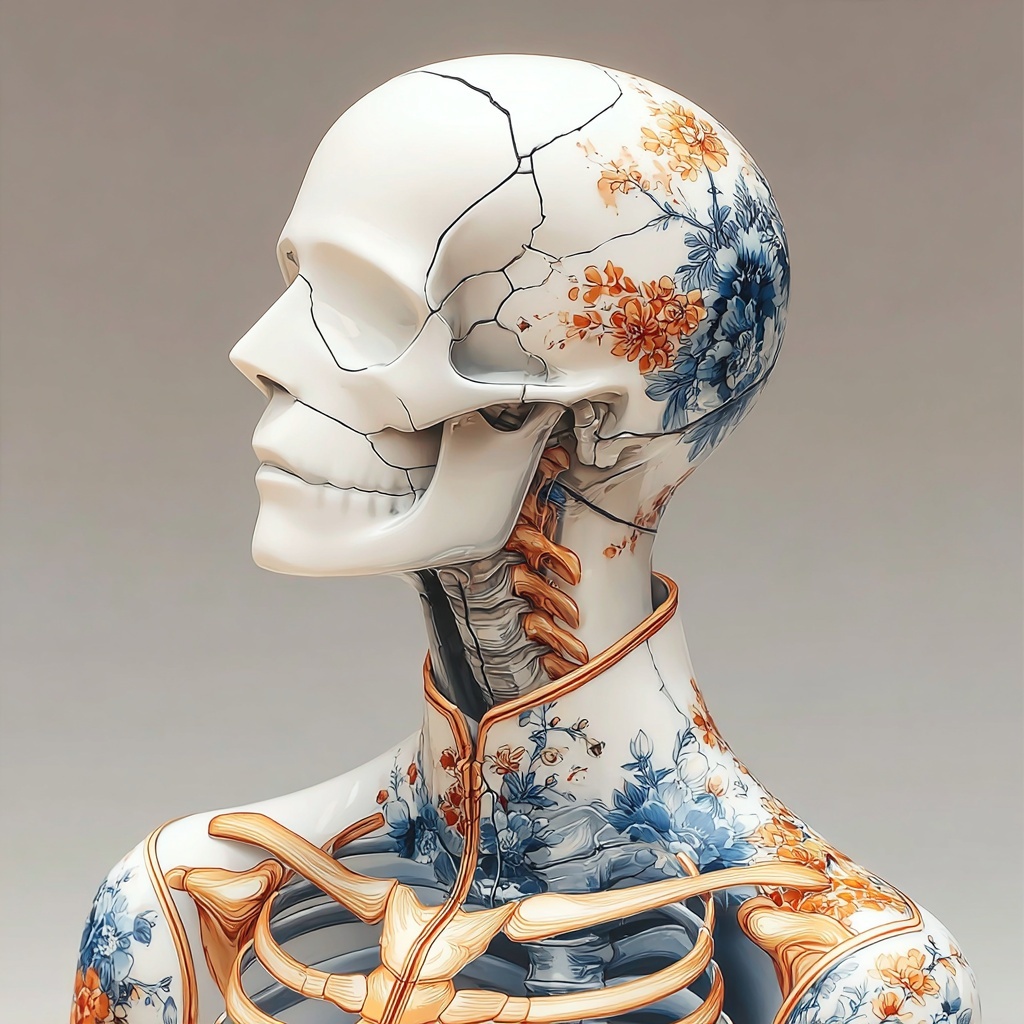 The Skeleton style transforms the subject to reveal skeletal anatomy beneath the surface. Blending bone structures with artistic textures—ranging from porcelain and illustration to stylized fashion.