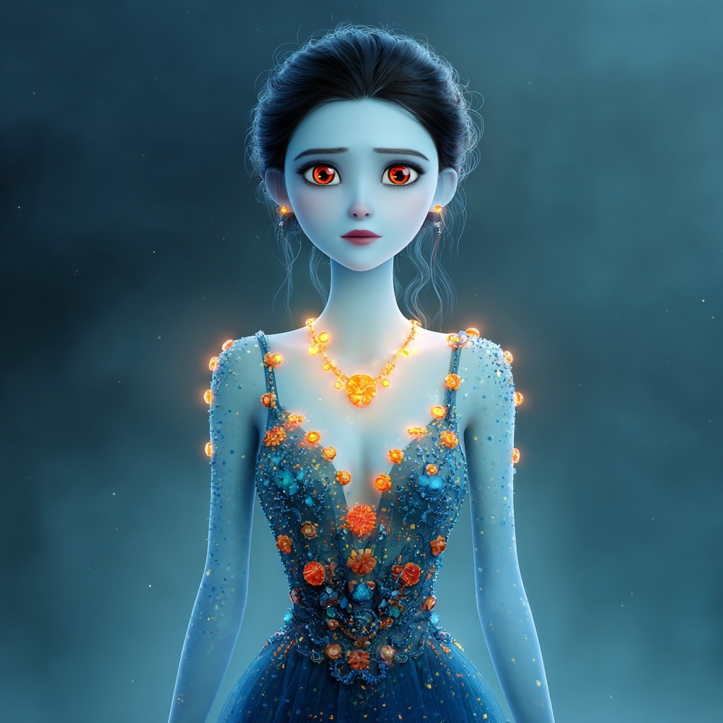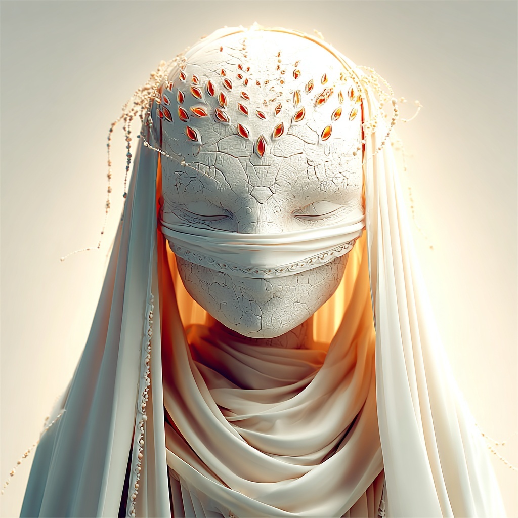 The Veil Cascade style transforms the subject into an elegant humanoid half-length portrait.