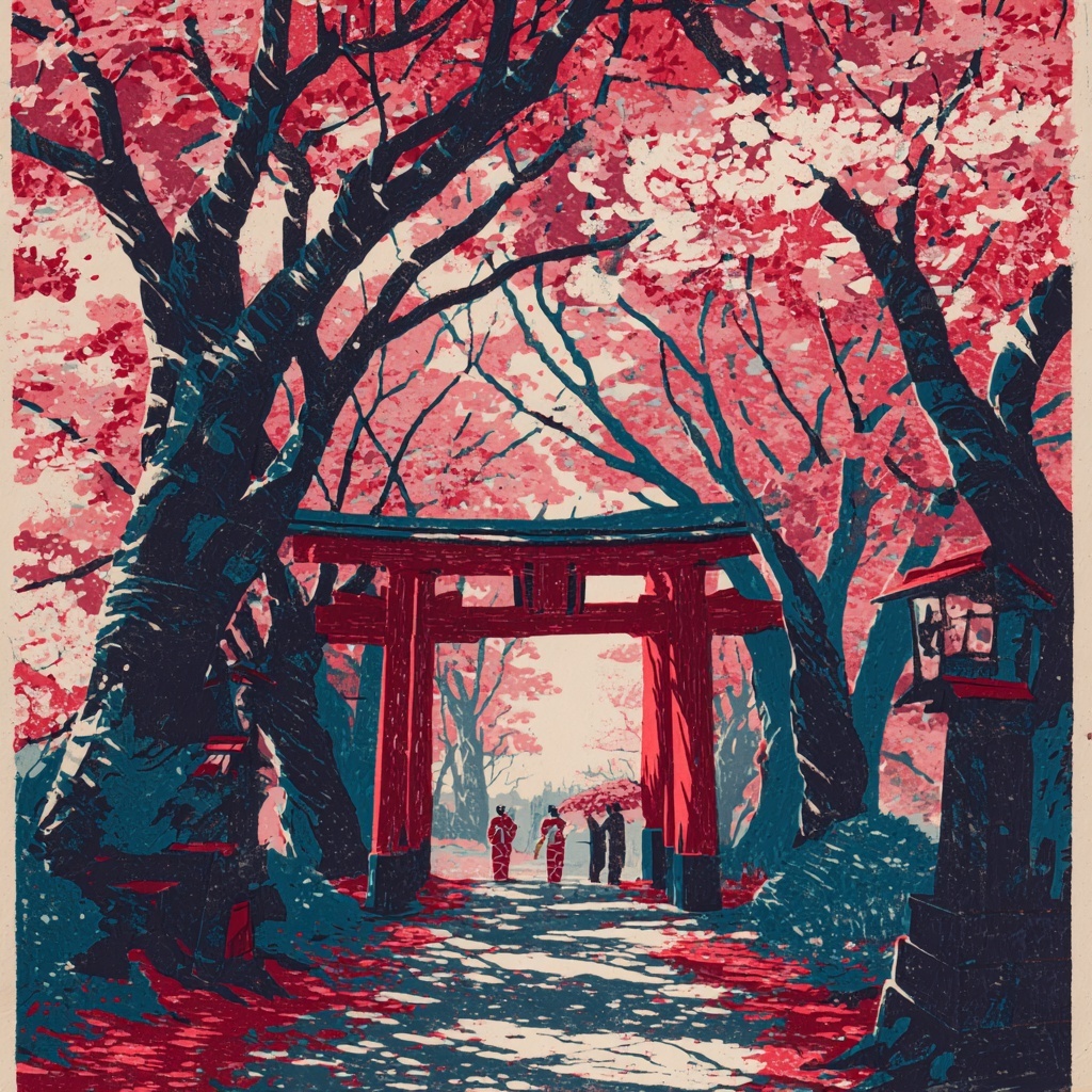 The Woodblock Print style is inspired by traditional relief printing, where artists carved images into wooden blocks, inked them, and pressed them onto paper or fabric.